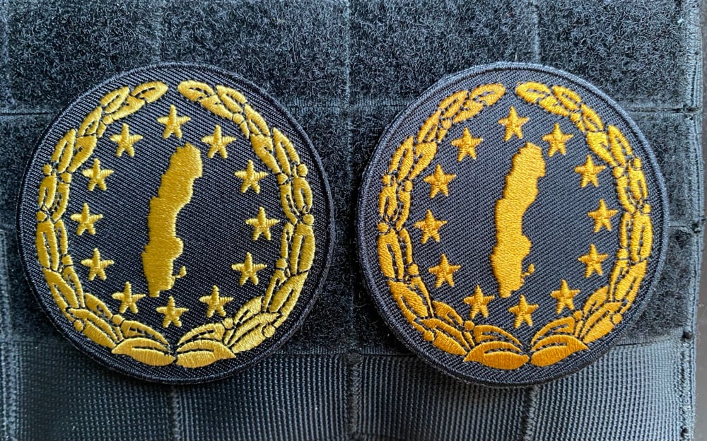 Also available: Granskontrollant - Customs inspector, (round patch with the starts and the map of Sweden). This is a 2.6" version with velcro backing. The left patch is in gold/yellow (like current other patches) and a darker gold/orange version that is more subdued.