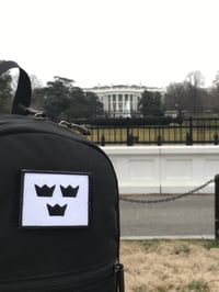 The classic Three Crowns design that is used within the Swedish Military to identify material that belongs to the military, i.e. vehicles etc. Is available in two versions, white or white with black border.